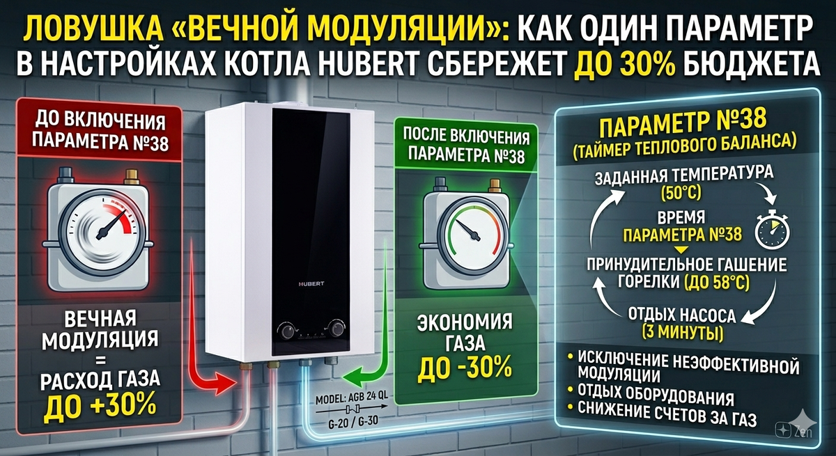 Ловушка «вечной модуляции»: как один параметр в настройках котла HUBERT сбережет до 30% бюджета на газ