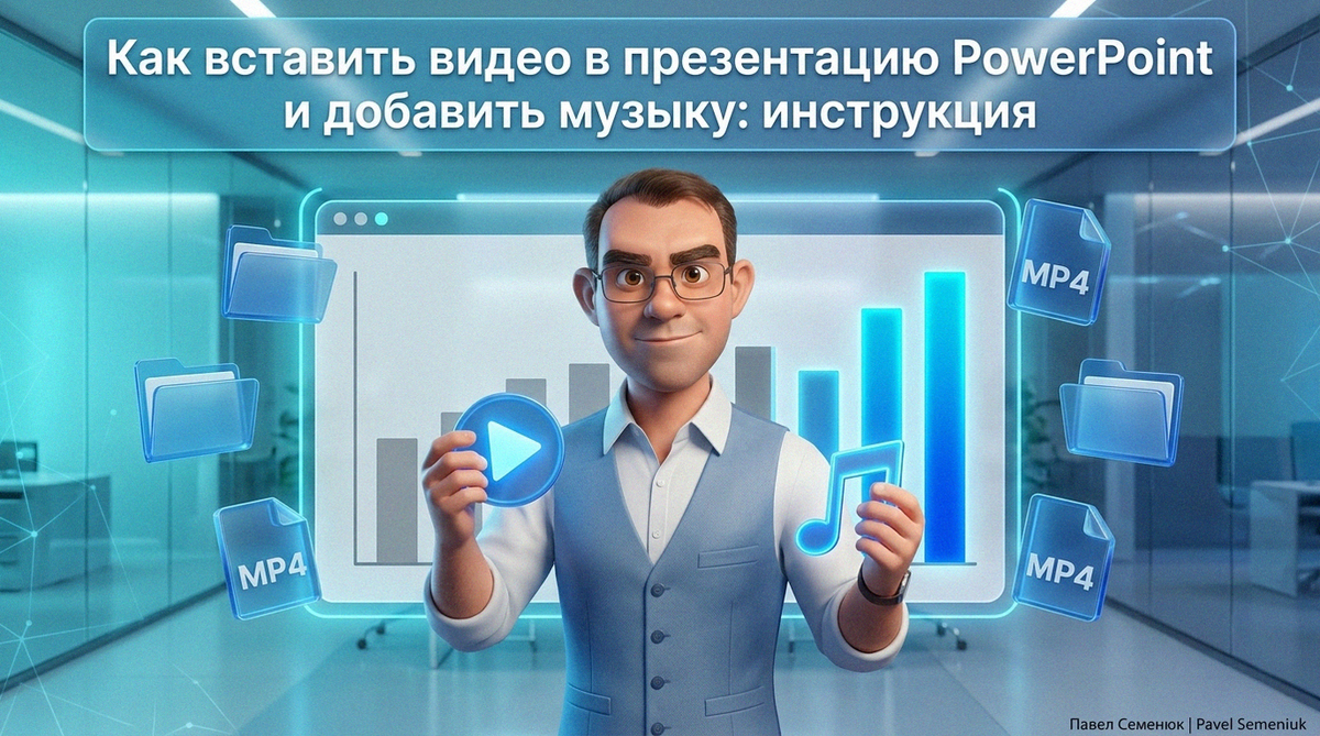 Вставка видео и музыки в презентацию — это интеграция локальных медиафайлов напрямую в структуру слайдов (через меню «Вставка»), которая увеличивает удержание аудитории до 71% и гарантирует бесперебойное воспроизведение контента даже без доступа к интернету.