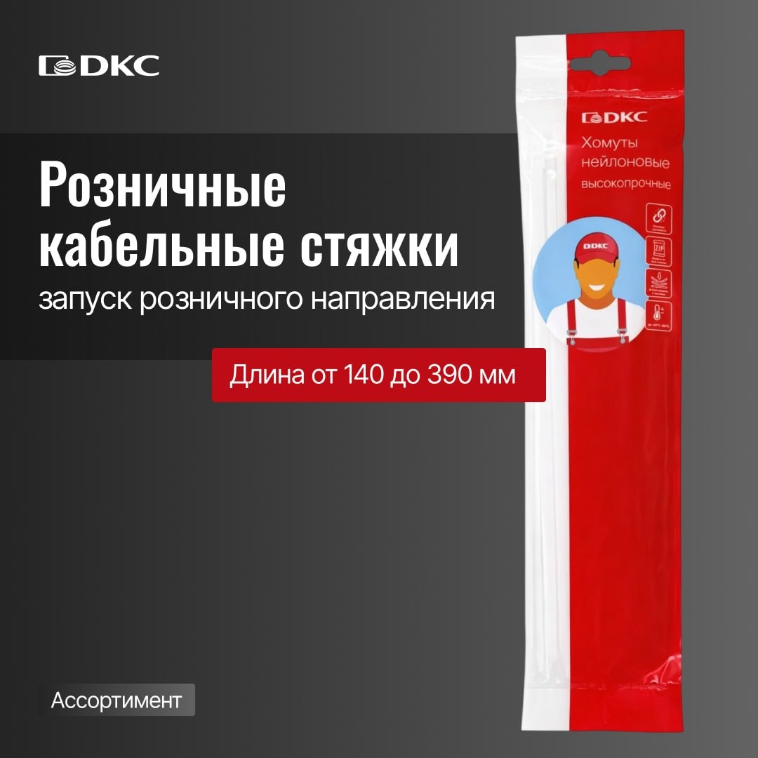 ! Компания ДКС запускает розничное направление и представляет стандартные кабельные стяжки в фасовке по 50 штук. Продукция ориентирована на продажи через розничные сети и маркетплейсы. Ключевые преимущества розничной серии ДКС: ⏺ Оптимальная кратность — 50 шт. для рациональной закупки без избыточных остатков; ⏺ Упаковка с zip-замком, обеспечивающая многократное открытие и сохранность продукции при хранении; ⏺ Высокие прочностные и механические свойства материала; ⏺ Замковый механизм с высокой прочностью на разрыв, гарантирующий надёжность фиксации; ⏺ Стойкость к воздействию масел и растворителей, расширяющая область применения; ➡️ Подробнее о продукции здесь.
