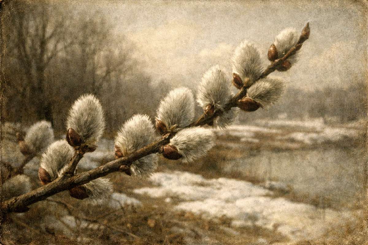 Изначально символом праздника, когда Христос въезжал в Иерусалим, были пальмовые ветви. На юге пальма означала победу, силу и воскресение. Но на Руси пальмы не росли. Нужно было найти замену. Выбрали вербу, потому что она просыпается первой. В марте и апреле, когда лес ещё голый и холодный, верба у ручья уже распускает пушистые почки. Она не ждёт тепла, лезет из холода первая. Это и есть победа жизни над смертью. Поэтому верба и стала символом.