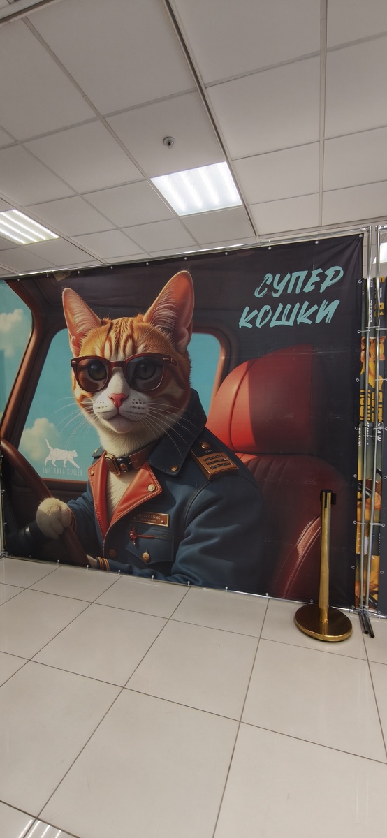В общем, бродили мы тут по магазинам, и видим - большой баннер с котом. Пошли туда. Оказалось выставка. Мимо пройти было не реально.