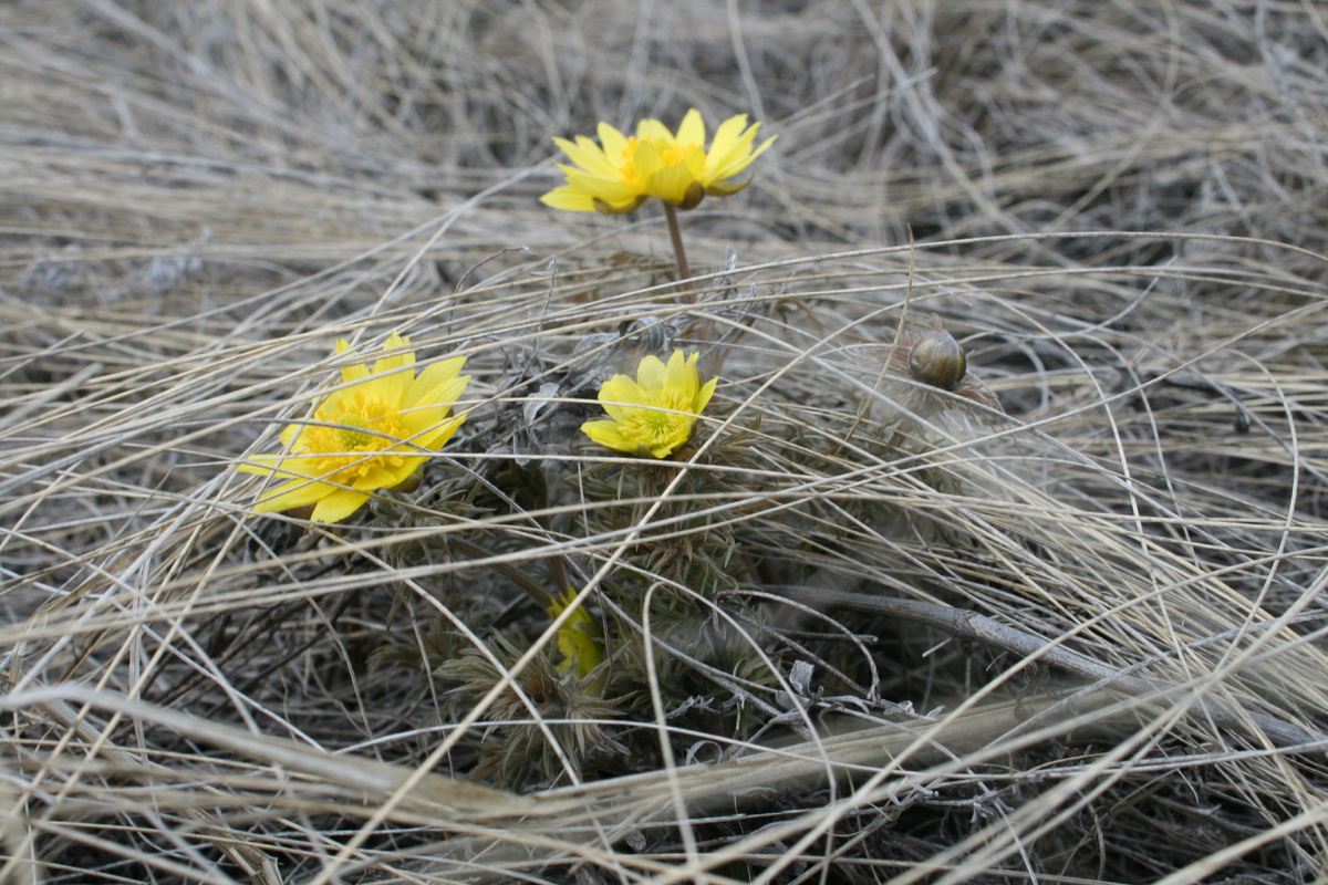 Зажглись адонисы в степи. Фотографирую не только их веселую вызывающую красоту… Стараюсь отразить в кадре условия, благодаря которым первоцветы смогли обмануть ночные холода. Одно из этих условий совсем простенькое. От имени адониса его можно назвать так: «Я в домике!» Почти каждое растение развивалось, росло и расцветало под защитой прошлогодней сухой травы. Влажная почва, запасы питательных веществ в корневище тоже важны… Но… Домик он и есть домик! Сюда не задувает северный ветер. Здесь, под травяным пологом, влага создает свой микроклимат. Пчелы и шмели запросто проникают к пыльце сквозь плетеную из травинок крышу. Будете внимательно вглядываться в степные просторы, в полянку с адонисами, распознавая их «домики» - уверен, перенесёте на себя и надолго сохраните в себе чувство защищенности. А может, сами захотите переночевать в чем-то подобноустроенном. «Я тоже в домике!» – мог бы сказать и сурок. Сегодня я сфотографировал первого проснувшегося «мормотика». У него после спячки еще за