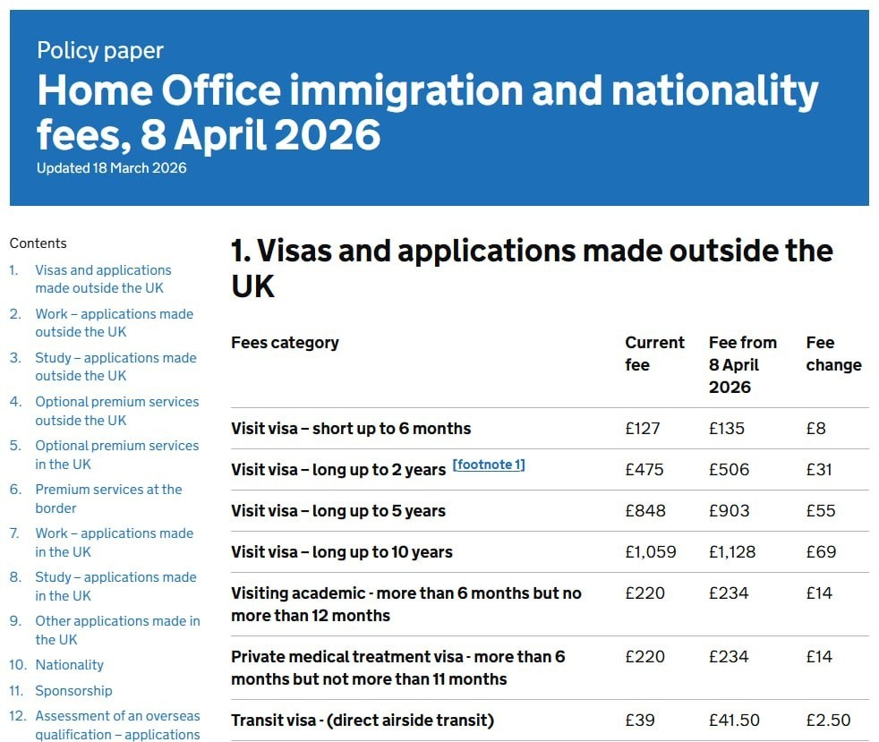 🇬🇧 С 8 апреля стоимость туристических виз для россиян вырастет примерно на 6,5%. 💰 Краткосрочная виза на 6 месяцев обойдётся в £135, а долгосрочная на 10 лет — в £1128. 📅 Уже сейчас свободные слоты для подачи документов найти крайне сложно. 🔀 Многие заявители столкнулись с переносом записей, назначенных на середину апреля. ℹ️ Полный тарифник можно изучить на сайте правительства. 🚨 Напоминаем, что для безвизовых стран с апреля также дорожает разрешение ETA. #Великобритания #виза #туризм @takeyourbackpack