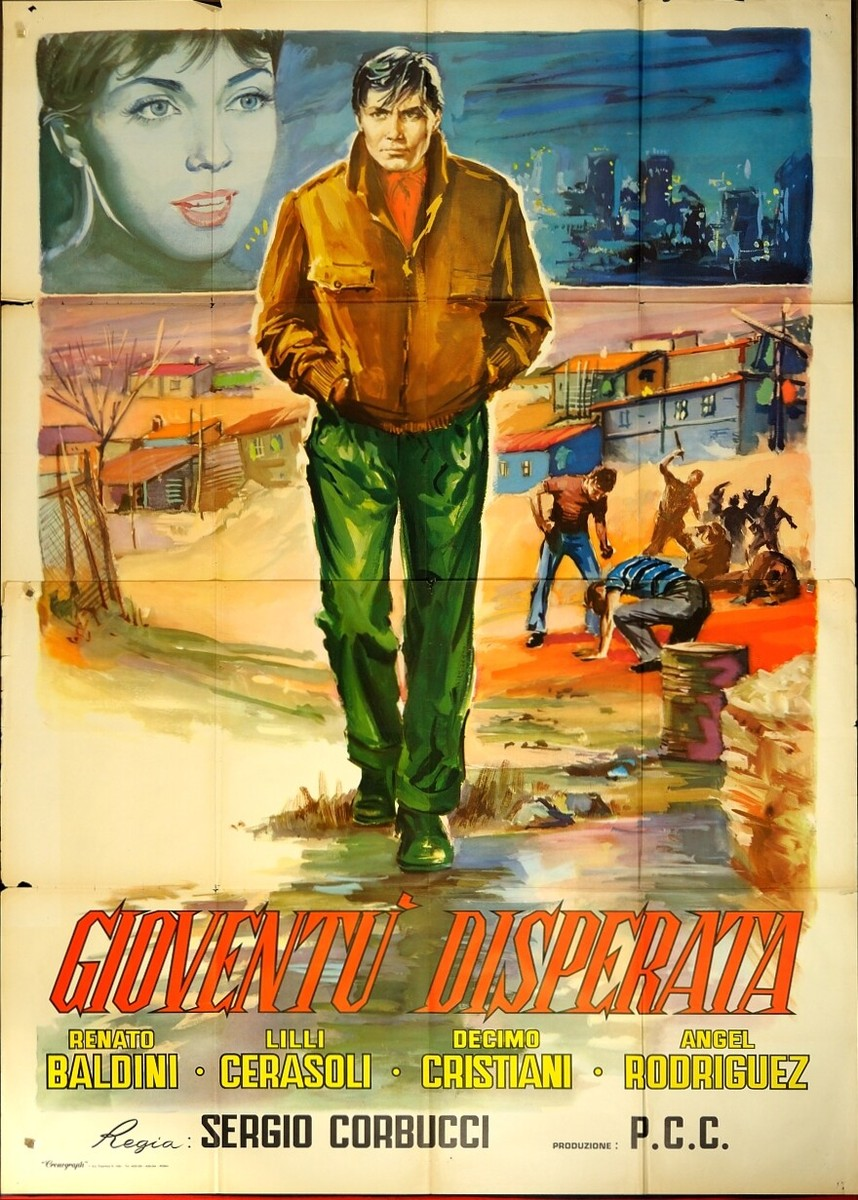 Врач хочет отомстить за убийство своей жены… Ангелы без неба / Отчаянная молодежь / Ángeles sin cielo / Gioventù disperata. Испания-Италия, 1957. Режиссеры: Карлос Аревало, Серджо Корбуччи. Сценаристы: Франсиско Элиас, Рамон Куадрени, Хайме Гарсия Эрранс. Актеры: Ренато Бальдини, Марухита Диас, Десимо Кристиани и др. Мелодрама. Премьера: 14.12.1957. Прокат в Италии: 0,1млн. зрителей. Врач (Ренато Бальдини) хочет отомстить за убийство своей жены… Если предыдущая мелодрама Серджо Корбуччи «Высшее признание» была совместной итало-западногерманской постановкой, то мелодрама «Ангелы без неба» была копродукцией с Испанией, а продюсеры дали Корбуччи в сорежиссеры испанца Карлоса Аревало (1906-1989). В год премьеры рецензент Segnalazioni cinematografiche с полным на то основанием писал, что «это скромный фильм. История рассказана без особой спонтанности и неубедительна» (Segnalazioni cinematografiche. 42. 1957). В самом деле, художественный результат педалированно сентиментальных «Ангелов без
