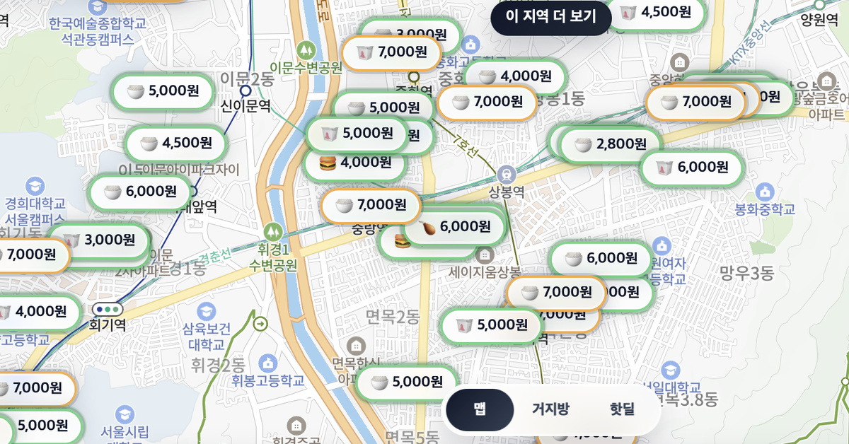 Это онлайн-сервис, куда пользователи скидывают точки с самой дешёвой и сытной едой в Сеуле.