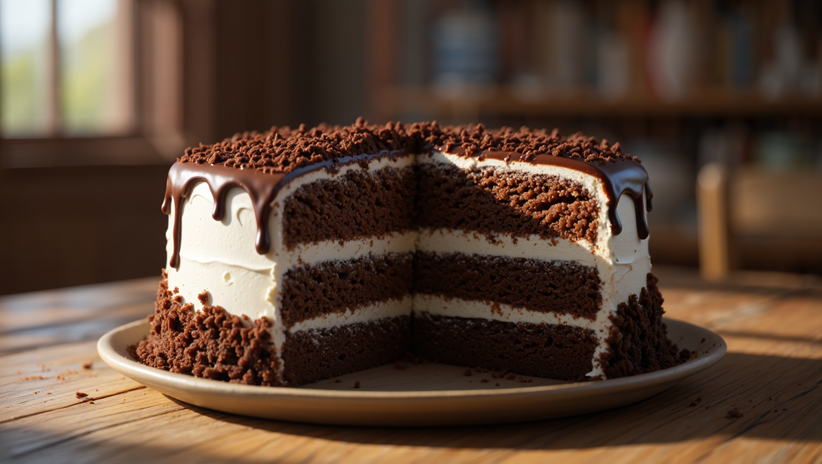 Кофе не перебивает шоколад — он его усиливает. Горечь кофе и тёмный шоколад работают в одну сторону: вкус получается насыщеннее, без лишней сладости. Бисквит остаётся влажным — не мокрым, не тяжёлым, а именно таким, каким должен быть хороший корж. Главное — кофе должен быть холодным и без молока, иначе эффект теряется. Ингредиенты Бисквит: — Мука — 200 г (просеять обязательно — корж выйдет ровнее) — Какао — 40 г (брать тёмное, алкализованное — цвет насыщеннее, вкус глубже; обычное даст бледный корж) — Сахар — 200 г — Яйца — 3 шт (комнатной температуры — достать за час до готовки) — Масло сливочное — 100 г (растопить и остудить до комнатной температуры) — Кефир — 150 мл (можно заменить сметаной 15–20%) — Сода — 1 ч. л. (гасить прямо в кефире — уксус отдельно не нужен) — Соль — щепотка — Ванильный экстракт — 1 ч. л. (или пакетик ванильного сахара) Пропитка: — Кофе крепкий — 150 мл (сварить заранее и полностью остудить) — Сахар — 1 ст. л. (можно не добавлять — зависит от вкуса) Крем: — Сл
