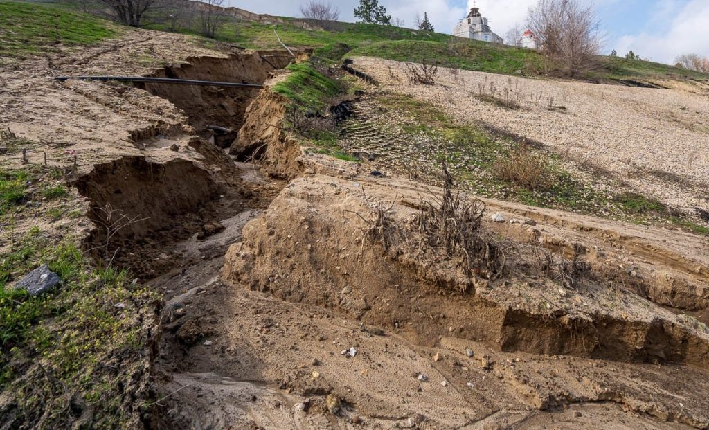 Ливень размыл склон у Волгоградского моста: образовалась глубокая промоина