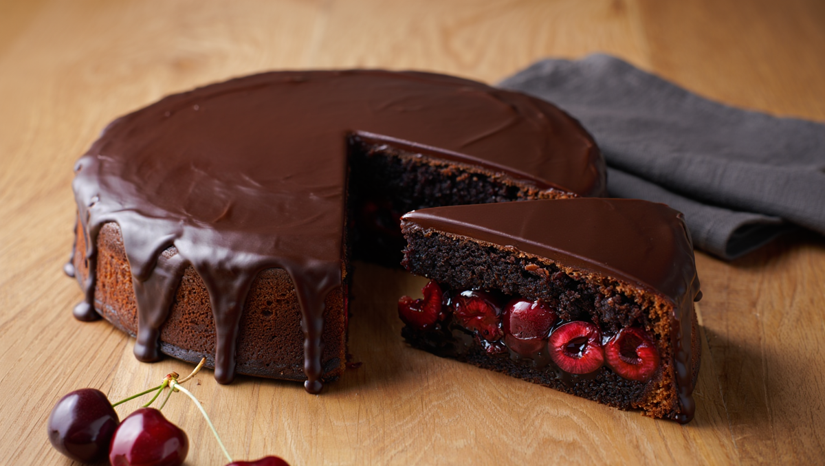 Шоколад в бисквите держит влагу. Вино отдаёт ягодам глубину. Вишня без косточки пускает сок прямо в тесто при выпечке. Три детали — и пирог выходит не сухим, не приторным. Консервированную вишню не беру никогда: там уксус и сироп перебивают всё остальное. Только свежая или замороженная — разница есть.