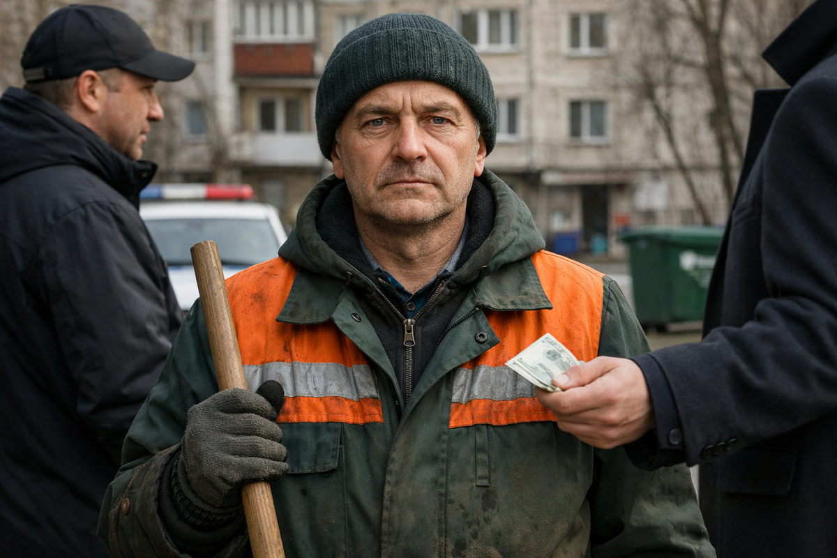 Когда Алёна вышла во двор в шесть утра, Мирон уже стоял у мусорных баков в светлом пальто, не по погоде чистом, и держал в руке белый конверт так, будто это была обычная бумага из офиса, а не вещь, которую прячут от чужих глаз. Мокрый асфальт ещё темнел после ночного дождя, у подъезда пахло сырой землёй и молодой сиренью, а скрежет щётки разрезал эту раннюю тишину ровно и сухо, словно кто-то настойчиво стирал с двора следы того, что здесь не должно было случиться. Захар Ильич, в оранжевой жилетке с перешитым карманом, мёл прямо к бордюру и даже головы не поднял, когда Мирон сделал шаг к нему.