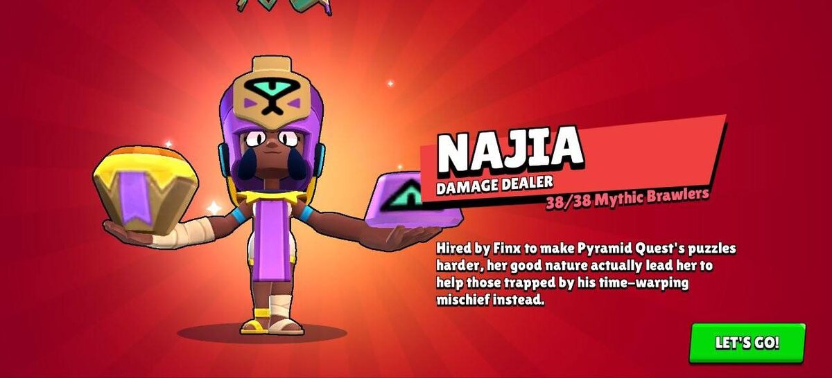 Мифический бравлер Наджия доступна на Дороге Старр. Ее можно приобрести за 1900 кредитов или 349 кристаллов, а также в случайных наградах и в Хранилище за ключи бравлера.