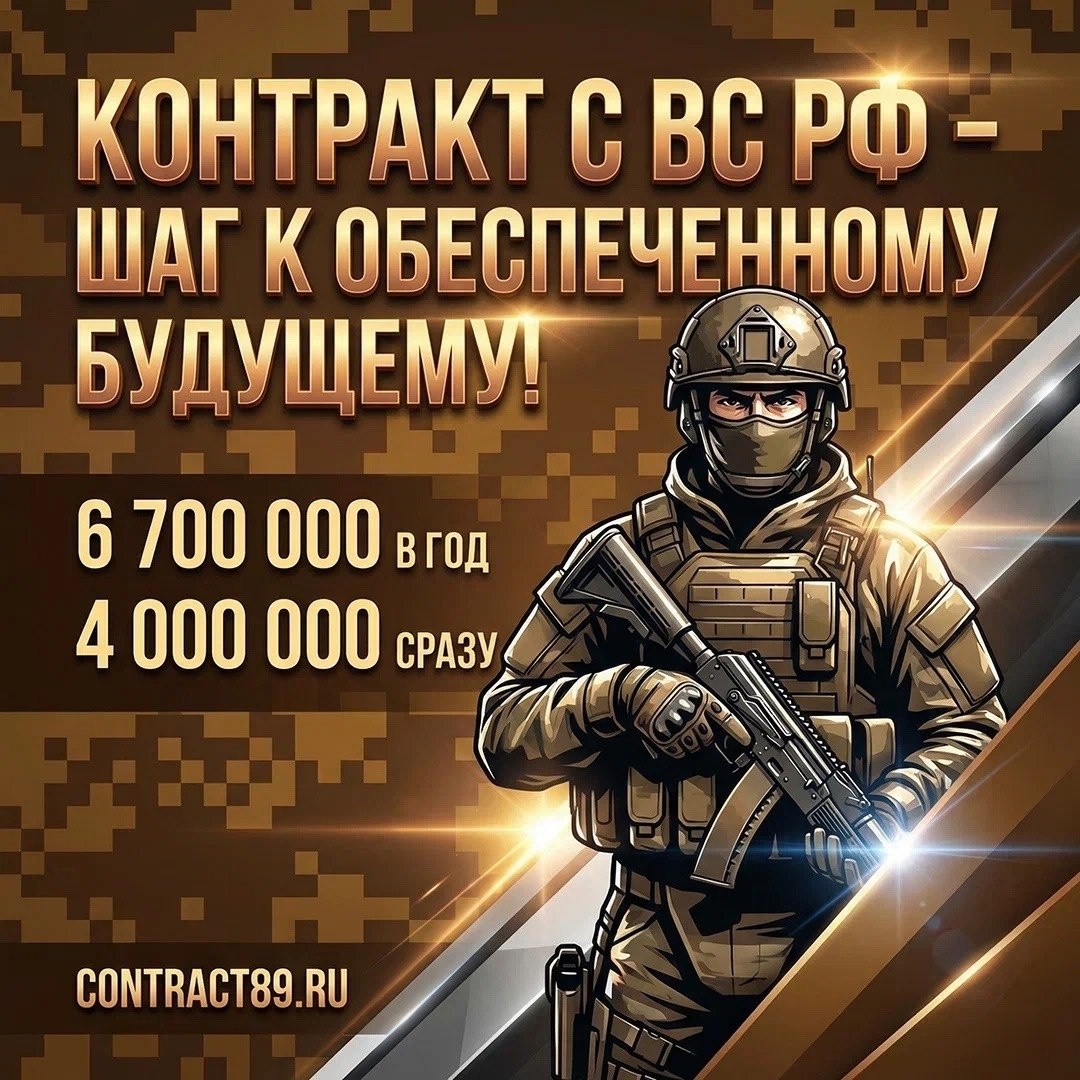 Контракт с ВС РФ от Ямала открывает новые перспективы: ✔️ 6 700 000 ₽ в год ✔️ 4 000 000 ₽ единовременно ✔️ от 225 000 ₽ ежемесячно в зоне СВО Подробнее: contract89.ru