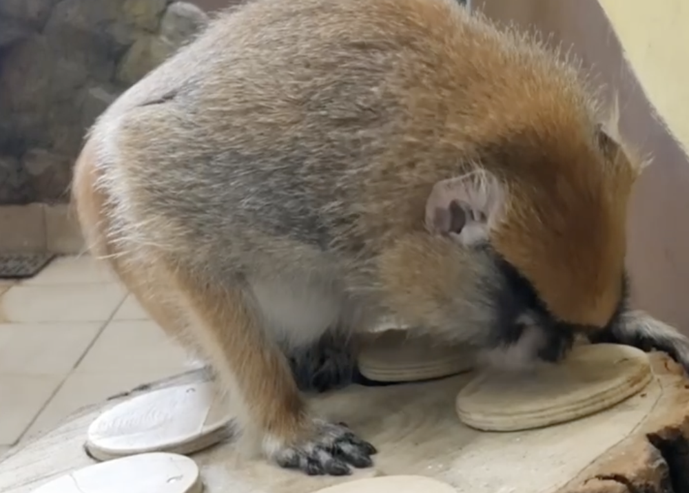 В Липецком зоопарке киперы подготовили интересное угощение для красной мартышки по кличке Яночка. Обезьянка с любопытством открывает ячейки одну за одной в поисках орешков. «Существуют различные способы разнообразить привычную рутину обитателей зоопарка. Мы часто создаём именно кормовое обогащение», — поделились сотрудники липецкого зоопарка. Чтобы добраться до заветного лакомства, Яночке нужно проявить смекалку и сообразительность. Подобные занятия для обитателей вольеров значат не меньше, чем для человека просмотр хорошего фильма. Они помогают бороться со скукой и включают работу интеллекта, пробуждая естественные инстинкты поиска пищи, заложенные природой.
