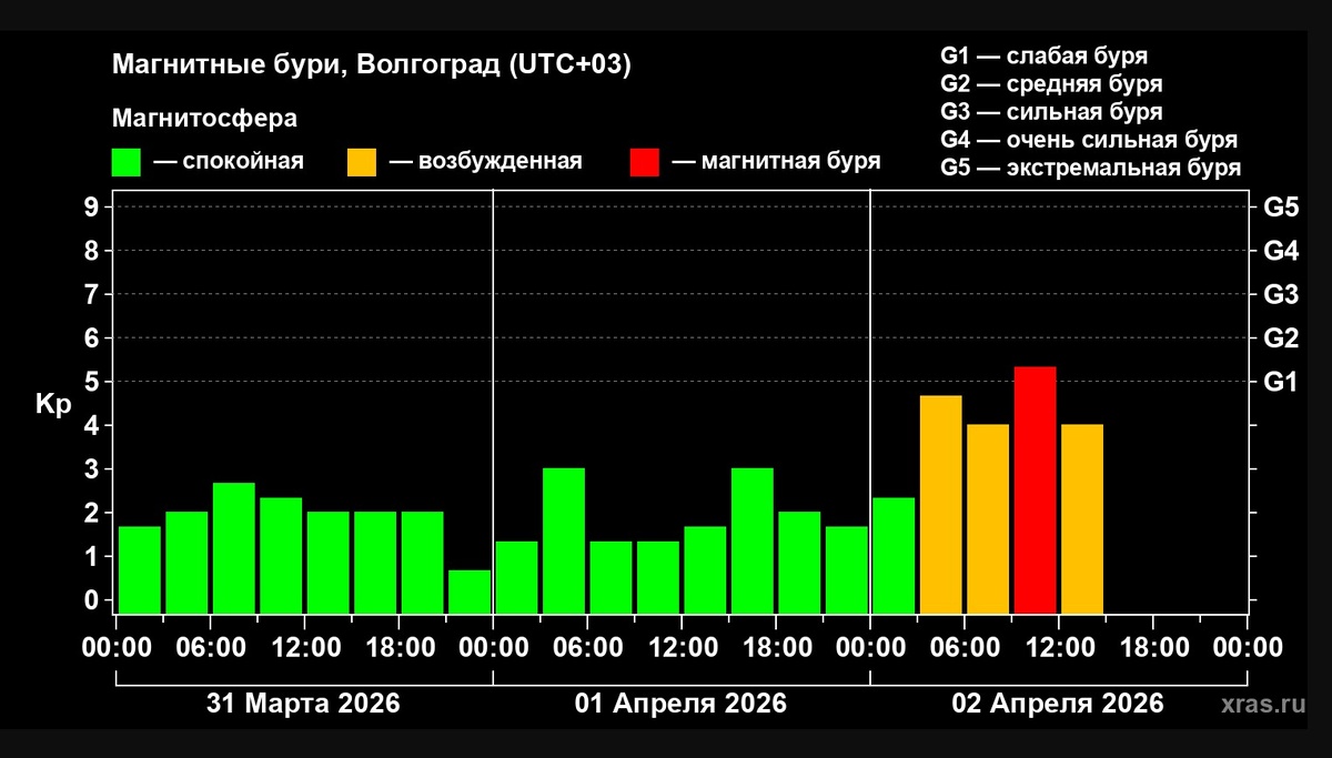 Длительная магнитная буря настигла метеозависимых волгоградцев днем 2 апреля
