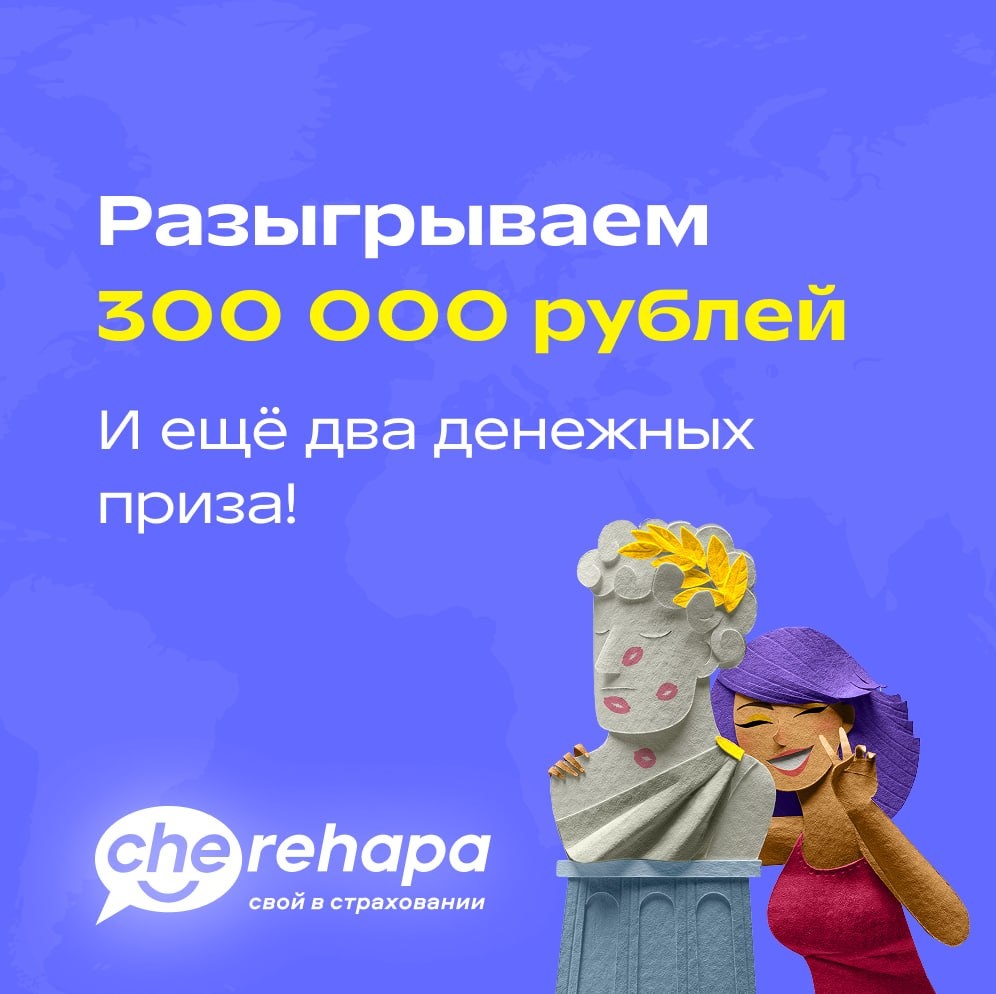 ! С 1 апреля по 31 мая 2026 года оформите туристическую страховку на сайте Cherehapa в одной из страховых компаний, которые участвуют в акции — они отмечены значком. Все путешественники, выполнившие условия, автоматически участвуют в розыгрыше. Всего будет три победителя: 🥇1 место — 300 000 рублей 🥈2 место — 200 000 рублей 🥉3 место — 100 000 рублей → Подробности на странице розыгрыша