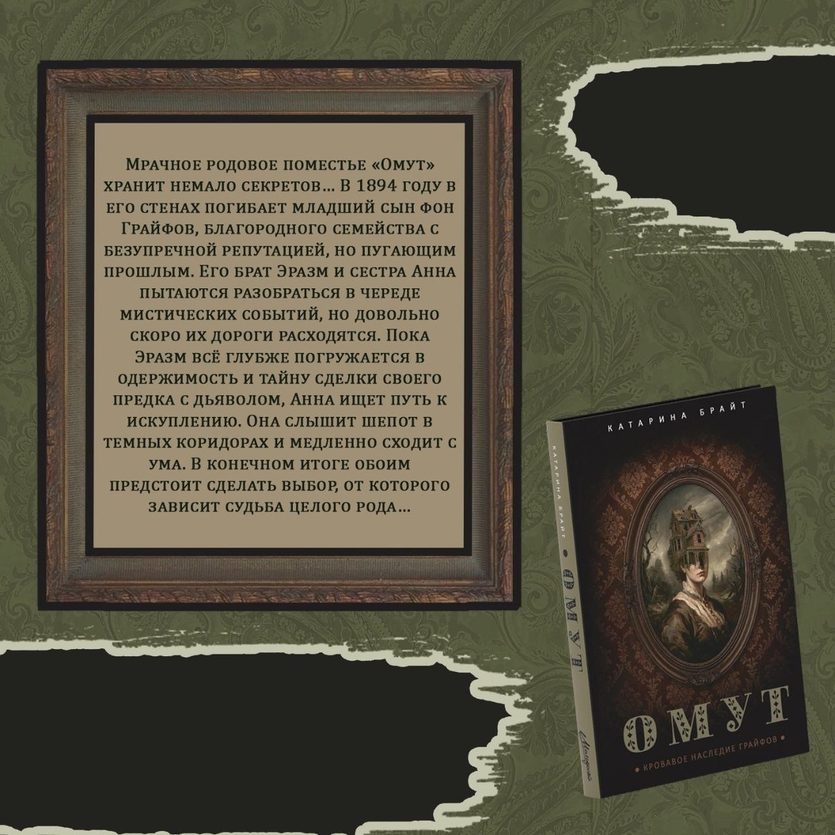 История, которая способна вас по-настоящему удивить. Мы говорим о книге Катарины Брайт «Омут. Кровавое наследие Грайфов»: старинное поместье, семейное проклятие и тьма, что живет в стенах уже не одно столетие🌟🪵 Что вас ждет: 🤩Семейные тайны, которые героям необходимо разгадать, чтобы выжить. 🤩Викторианский особняк, доводящий до безумия. 🤩Готический сеттинг в лучших традициях классических хорроров «Дракула» и «Франкенштейн, или современный Прометей». 🤩Оккультизм и алхимия. Аннотация: Мрачное родовое поместье «Омут» хранит немало секретов… В 1894 году в его стенах погибает младший сын фон Грайфов, благородного семейства с безупречной репутацией, но пугающим прошлым. Его брат Эразм и сестра Анна пытаются разобраться в череде мистических событий, но довольно скоро их дороги расходятся. Пока Эразм всё глубже погружается в одержимость и тайну сделки своего предка с дьяволом, Анна ищет путь к искуплению. Она слышит шепот в темных коридорах и медленно сходит с ума. В конечном итоге