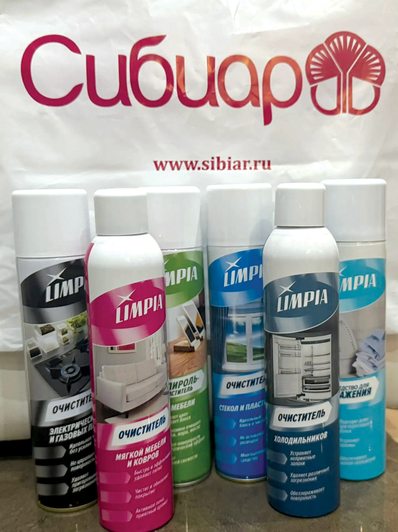 Поскольку трудности уже давно не смущают Виктора Васильевича, который за 50 лет трудовой деятельности на этом предприятии умело находил выход из самых разных кризисов, в данных условиях он как руководитель не ограничился реализацией изготовленной ранее и успевшей зарекомендовать себя продукции СИБИАР. Завод предложил покупателям новые разработки. Одна из них – серия «Лимпия» (Limpia), которая включает очень широкий ассортимент. Это и средство для глажки белья, которое помогает легко устранять «заломы» на сухой ткани, и средство для очистки холодильника, которое умелые хозяйки активно используют, в том числе для очистки пластиковых подоконников до