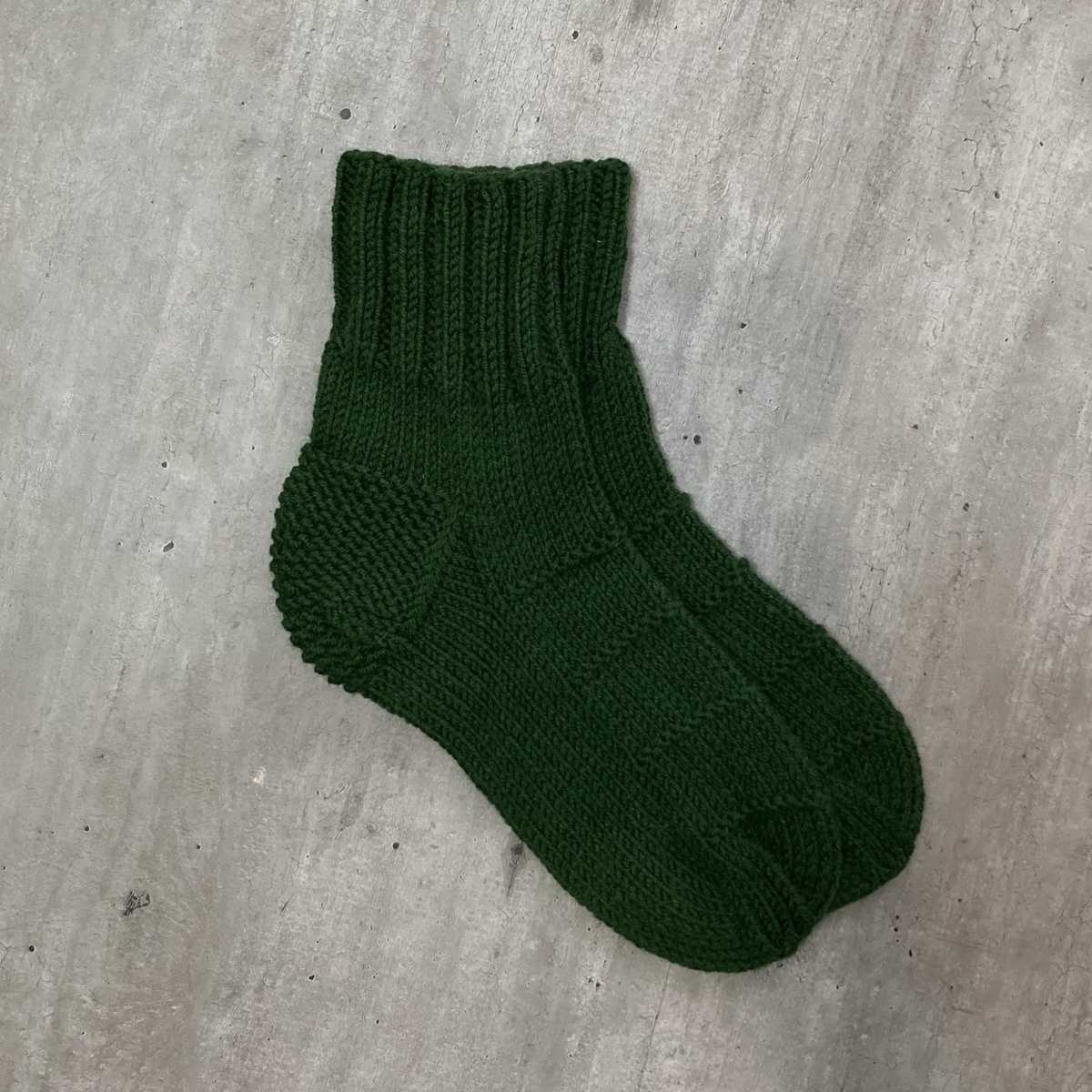 Для сравнения я связала обычные мужские носки с клином подъема, размер 42 (зеленые).