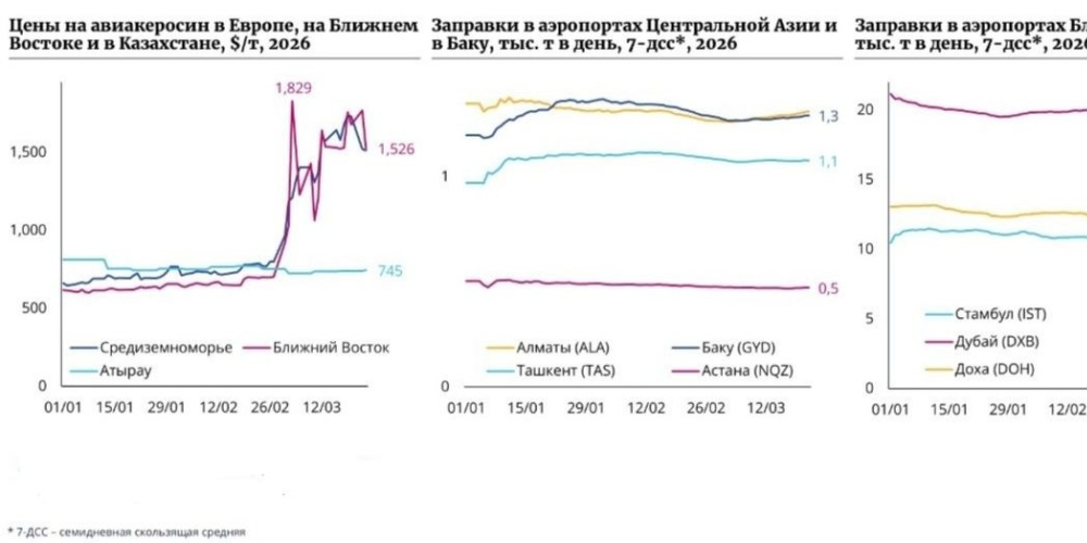 Обострение ситуации на Ближнем Востоке и введенные Ираном ограничения в Ормузском проливе спровоцировали глобальный логистический сдвиг. По мнению эксперта компании «Argus» Сергея Агибалова, аэропорты Центральной Азии и Южного Кавказа становятся всё более привлекательными для международных авиаперевозчиков на фоне дефицита и резкого удорожания топлива в традиционных узлах. Из-за сокращения поставок с Ближнего Востока стоимость авиационного керосина в Европе и Азиатско-Тихоокеанском регионе взлетела до 1600–1800 долларов за тонну. В это же время в Казахстане цены остаются стабильными и варьируются в пределах 734–777 долларов. Такая существенная разница в эксплуатационных расходах заставляет авиакомпании пересматривать свои маршруты в пользу более экономичных транзитных точек.