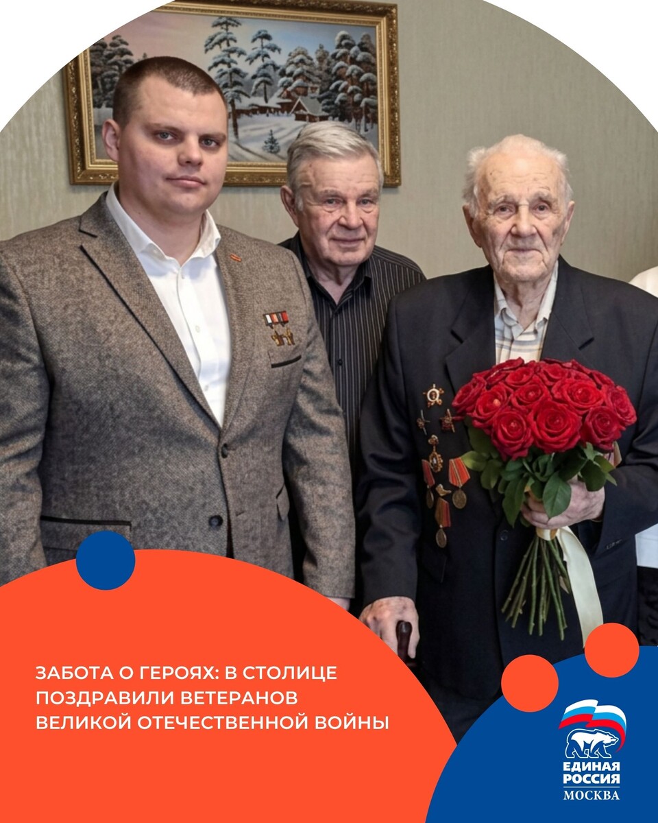 Герой России, участник СВО Эдуард Казымов и депутат Мосгордумы Светлана Акулова поздравили с днём рождения двух ветеранов Великой Отечественной войны из района Хорошёво‑Мнёвники — Фатыха Хамидулина и Георгия Андреева, которым исполнилось по 103 года. Именинникам вручили подарки и цветы, поблагодарили за службу и труд. «Георгий Андреев и Фатых Хамидулин — люди, которые для нас являются нравственным ориентиром. Когда я был на СВО, память о подвиге наших дедов и прадедов не давала сдаться и отступить. Для меня особенно важно лично сказать ветеранам слова благодарности и уважения», — подчеркнул Эдуард Казымов. Москва бережно хранит память о подвиге фронтовиков и выстраивает для ветеранов систему адресной поддержки — социальное обслуживание на дому, бытовая помощь, программа «Санаторий на дому» для тех, кто не может поехать на восстановление.