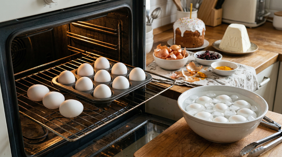 После разговора с подругой я полезла искать информацию. Оказалось, что метод приготовления яиц в духовке — вовсе не какая-то экзотика. Им пользуются многие, особенно за рубежом, где на Пасху тоже красят яйца и тоже сталкиваются с проблемой больших объёмов. Принцип простой до невозможности: яйца раскладываются прямо на решётку или в формы для маффинов и ставятся в разогретую духовку.