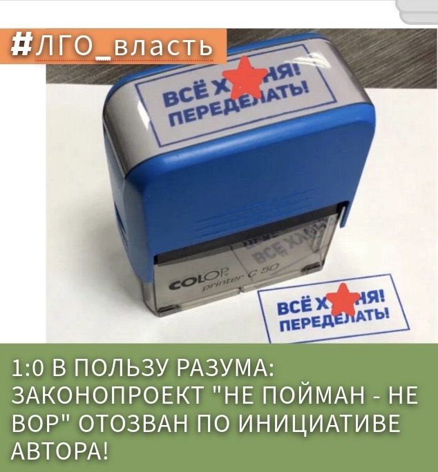 Прекрасно, что на данном этапе разум всё-таки победил. Однако всё это вовсе не означает, что через какое-то время законопроект не вернётся на рассмотрение Федерального собрания в слегка отретушированном виде.