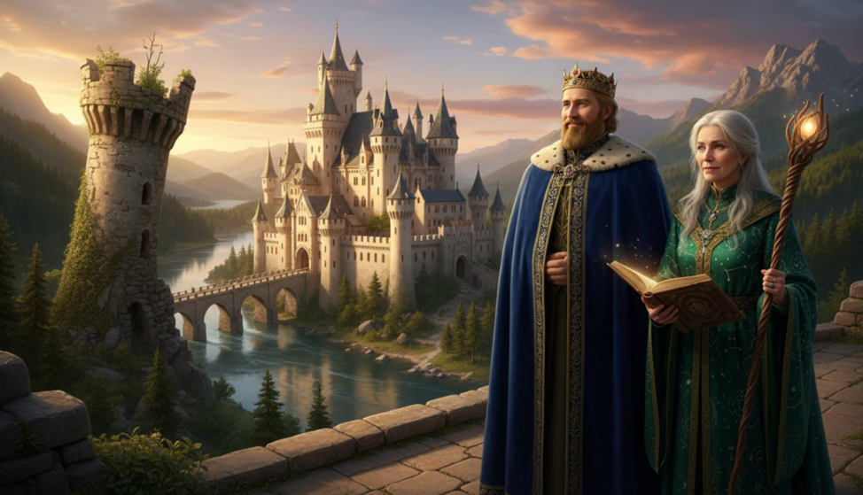 Но мало кто знал, что истинное волшебство творилось не в тронном зале, а в тихой башне с узкими окнами. Там, под шёпот пергамента и тихий звон счётов, из года в год трудилась старая Хранительница Книг Стелларис.