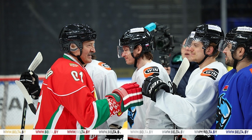 Президент Беларуси Александр Лукашенко приехал в "Минск-Арену" на тренировку выступающей в КХЛ команды "Динамо-Минск"