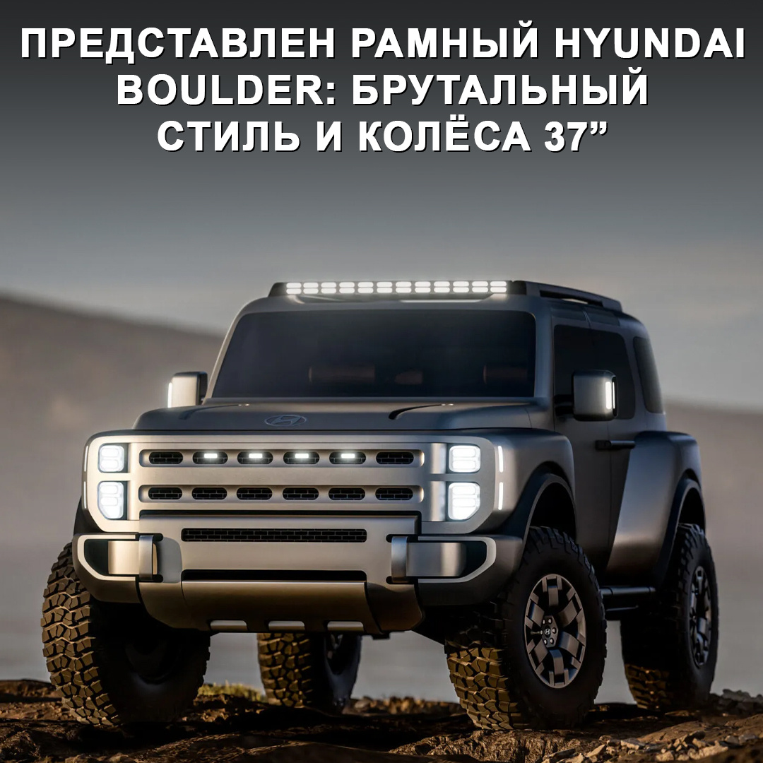 Концепт показали на Нью-йоркском автосалоне, он открывает целую линейку рамных моделей от корейского бренда. Причём первым из них в серию пойдёт пока не представленный пикап для рынка США. Boulder как раз разрабатывали в Северной Америке, в его дизайне заметны отсылки к Ford Bronco, Jeep Wrangler и Land Rover Defender. Также выделяются 37-дюймовые колёсные диски, LED-люстра и экспедиционный багажник на крыше. В салоне — премиальные материалы, проекция на всю ширину лобового стекла, небольшие экраны и множество физических кнопок. Техническая часть пока не раскрыта. Но известно, что первый рамный Hyundai должен выйти на рынок к 2030 году. Хорошо смотрится или дизайнеры свернули куда-то не туда? 🤔 #дромновость #ньюйорк #hyundai #boulder #рамник