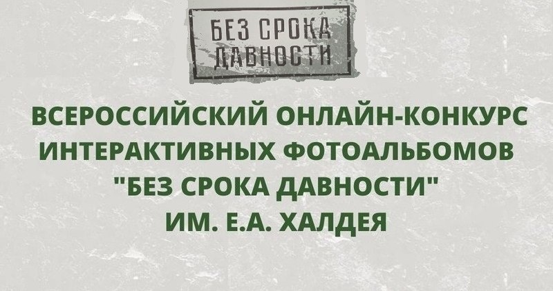 ! 🔔 Приглашаются все желающие к участию во Всероссийском онлайн-конкурсе интерактивных фотоальбомов «Без срока давности» имени Е.А. Халдея. Кто может участвовать: 🔍 студенты учреждений среднего профессионального образования 🔍 обучающиеся высших учебных заведений 🔍 участники должны работать под руководством педагога-наставника ✉️ Приём заявок: с 23 марта по 1 июня 2026 года Для участия необходимо заполнить Яндекс-форму по ссылке vk.cc/cW7nE1 🖥 На официальном сайте конкурса доступны методические рекомендации и бланки документов vk.cc/cW7nRP #объявления_севмгу