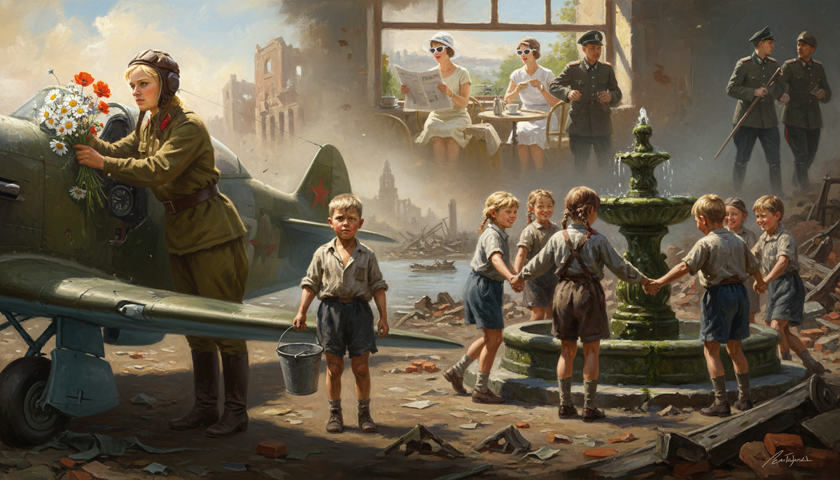 Август 1942 года. Аэродром в Энгельсе, Саратовская область. Три молодые женщины готовятся к вылету. Слева направо: Лилия Литвяк, Екатерина Буданова, Мария Кузнецова. Они — лётчики-истребители. Через несколько часов — Сталинградский фронт. Этим же летом. Париж. Круглые солнцезащитные очки в белой оправе. Писк моды сезона. Парижанки читают что-то у кафе, офицеры вермахта неторопливо прогуливаются по бульварам. Никто не спешит. Оккупированный город живёт своей жизнью. Вот два снимка, два лета, один год. И между ними — пропасть, которую не измерить километрами. Я давно думаю об этом контрасте. Не как об обвинении — история сложнее любого приговора. Но как о зеркале, в котором видно то, что обычно замалчивается, когда начинают делить победу на части. Лилии Литвяк тогда было двадцать лет. Маленькая, светловолосая, она украшала кабину цветами — и записала на счёт двенадцать сбитых самолётов противника, прежде чем сама не вернулась из боевого вылета в июле 1943-го. Её останки нашли только в 1