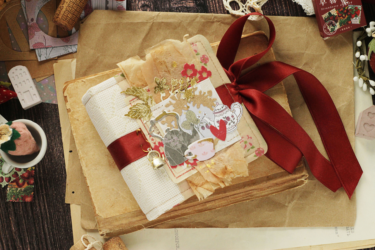 Всем привет! С вами Яна. Как преданный дизайнер Тимуд, я считаю своим прямым долгом время от времени создавать и нести в массы чайное настроение, дайте только повод) Несложно догадаться, что тем самым поводом на этот раз послужили фарфоровые чашечки и чайник из листа для вырезания от набора бумаги "Люби Лети Твори". Они такие милые - как будто срисованы с кукольного чайного сервиза. В общем, "я смотрю на тебя, ты глядишь на меня - искра, буря, безумие" - так и сотворился этот альбомо-блокнот. Для пущего чайного антуража я даже тонировала в чае ткань для обложки и пустила в ход бумагу от использованных чайных пакетиков. В остальном мне помогала прекрасная бумага из коллекций "Люби Лети Твори" и "Давай дружить". Кстати, некоторые листы из этих наборов прямо созданы для того, чтобы превратиться в бумажный чайный сервиз! А ещё мне пригодились несколько листов из маленьких наборов бумаги "Зайки-елки" и "Текстурной-2". Размер этого малыша - 11х11 см. Но он получился довольно таки вмес