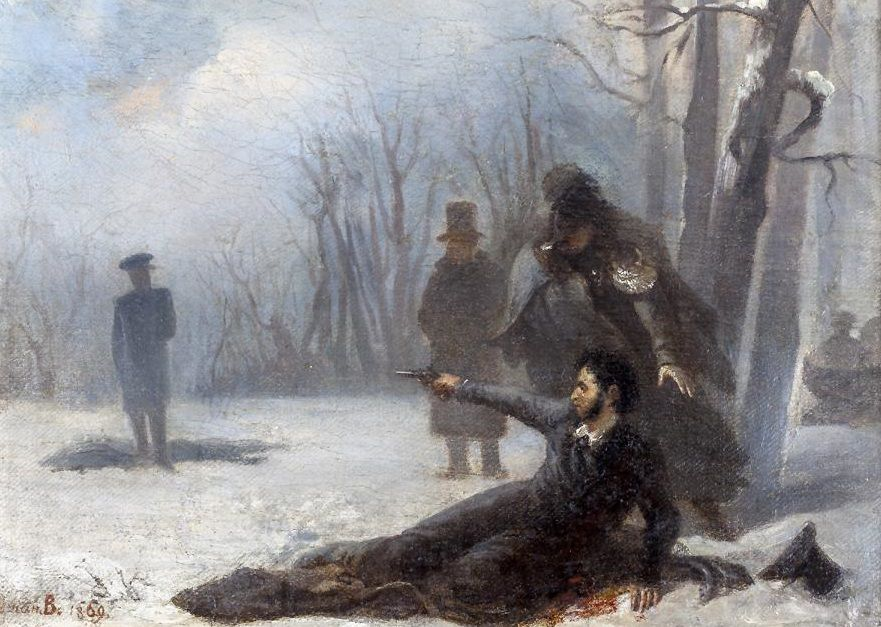 Снег у Чёрной речки был рыхлым, глубоким. Данзас, тяжело ступая в ботфортах, вёл Пушкина к барьеру. Тот шёл быстро, почти порывисто, лицо было спокойно, но глаза горели холодным, сосредоточенным огнём.
