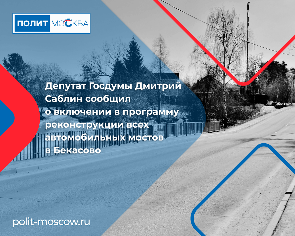 Депутат Госдумы Дмитрий Саблин сообщил о включении в программу реконструкции всех автомобильных мостов в Бекасово