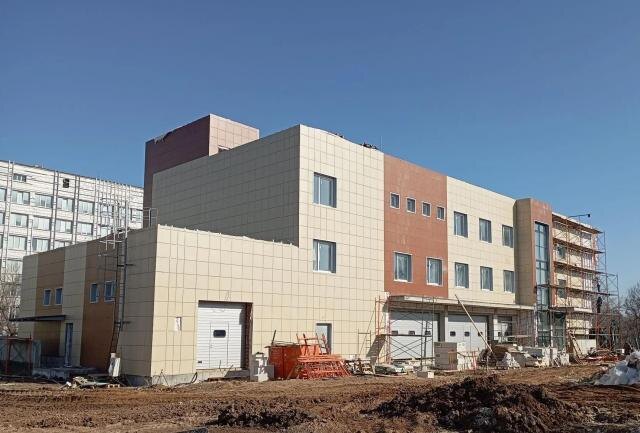 Само четырехэтажное здание уже полностью возведено, и в настоящее время специалисты подрядной организации завершают облицовку его фасада. Параллельно с этим ведется внутренняя отделка помещения и монтаж инженерных систем: отопления, электроснабжения, кондиционирования и вентиляции.