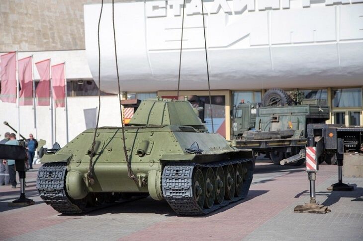 В Волгограде началось формирование «Воинского эшелона» в рамках совместного проекта музея-панорамы «Сталинградская битва» и Приволжской железной дороги. На площади перед зданием музея-панорамы началась погрузка образцов военной техники периода Великой Отечественной войны из коллекции музея. Экспонаты отправятся в путь в составе ретропоезда по Астраханскому, Волгоградскому и Саратовскому регионам. Эшелон сделает 21 остановку на станциях этих трех областей. Напомним, «Воинский эшелон» в преддверии Дня Победы курсирует по железной дороге с 2018 года и всегда вызывает живой интерес у жителей. Фото музея-панорамы «Сталинградская битва» Новости «Высоты 102» в MAX