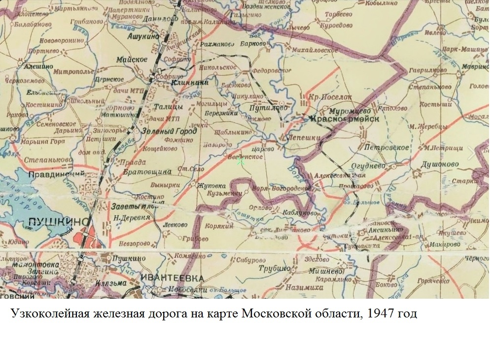 Узкоколейная железная дорога от станции Софрино Ярославского направления до Вознесенской мануфактуры (территория современного города Красноармейск Московской области) была пущена в 1924 году. Немного истории. Город Красноармейск относительно молодой, раньше здесь находилось село Муромцево. В 1834 году была открыта Вознесенская бумаго-прядильная фабрика, которая и стала «градостроительным» предприятием. После революции фабрику переименовали в «Текстильную фабрику имени Красной Армии и Флота». Соответственно, рабочий поселок при фабрике, в 1928 году стали называть Краснофлотским, а с 1929 года- Красноармейский. В 1947 году поселок Красноармейский был преобразован в город Красноармейск в составе Пушкинского района Московской области. В 1924 году для нужд фабрики построили узкоколейку от станции Софрино протяженностью около 16 км. Кроме перевозки грузов, дорога стала перевозить пассажиров. Как работала узкоколейка, можно узнать из прессы 1920-1940 гг. 1925 год, газета «Московская Правда»