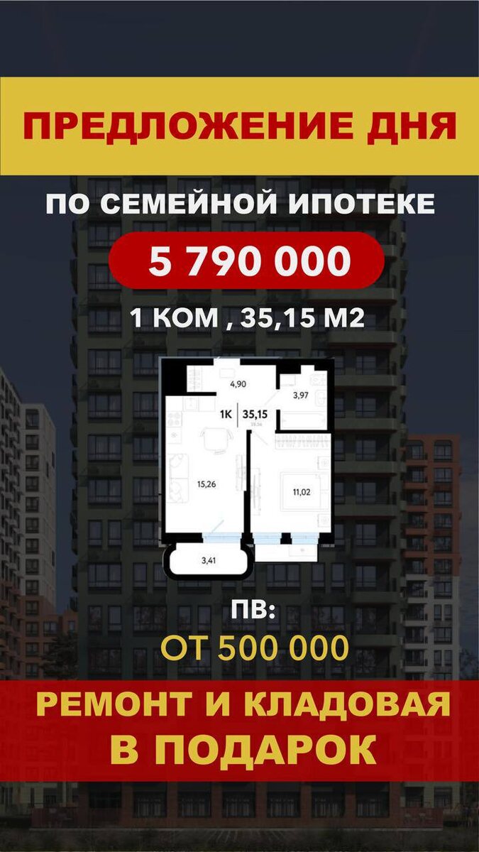 ❕❕❕❕❕ ⚡️СЕМЕЙНАЯ ИПОТЕКА⚡️ 🎁🎁🎁🎁 РЕМОНТ + КЛАДОВАЯ 🟧Район: Комарово парк 🟧 Эко-локация: Квартал расположен в экологически чистом южном районе города, рядом с лесными массивами. 🟧 Функциональная планировка: Просторная кухня-гостиная (15.21 м²) и уютная спальня (11.18 м²). 🟧 Максимальная приватность: Всего 4 квартиры на этаже. 🟧 Ремонт и кладовая в подарок 🟧 Легкий вход в сделку: Мы знаем, как важен первый шаг, поэтому готовы помочь с первоначальным взносом — от 500 000 ₽! 👛 ЦЕНА: 5 790 000 ₽ Пишите @andreychuk_estate2 - расскажу подробности и подберу квартиру для вас. А чтобы не потерять доступ ко всем актуальным подборкам, подпишитесь на резервный канал в MAX - 📲 подписаться