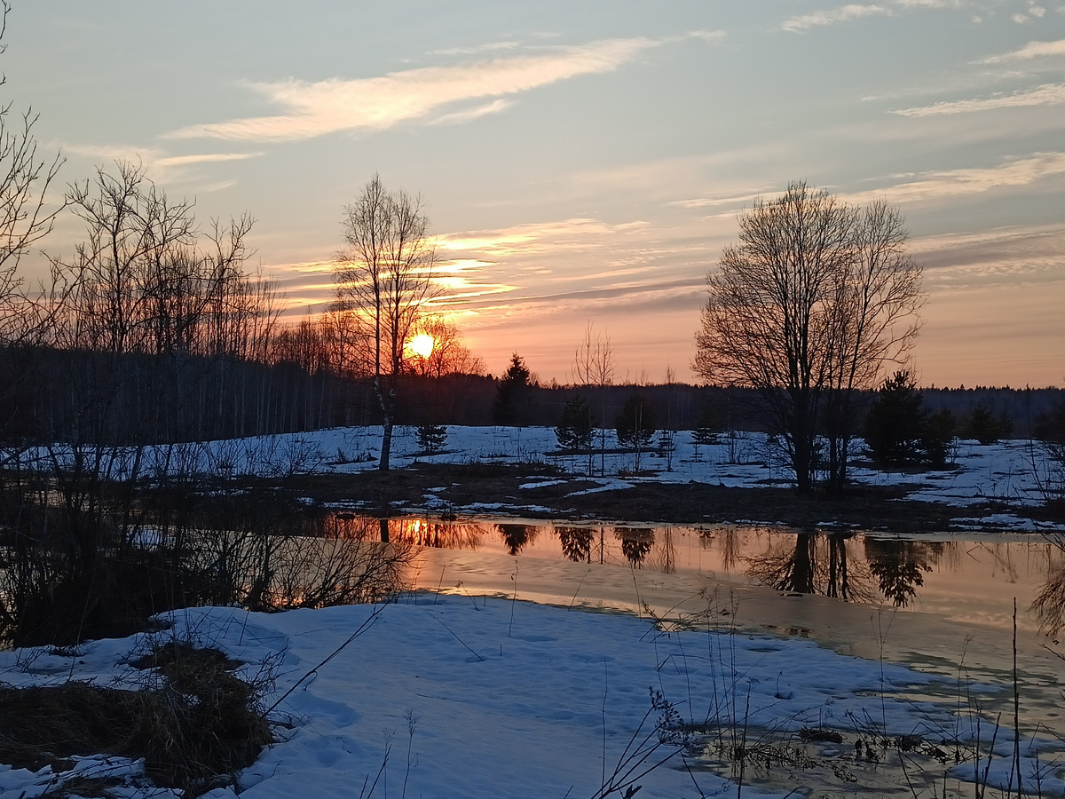 Казавшиеся незыблемыми белые одеяла Вологодчины сперва утратили толщину до покрывал и только потом, неохотно поддавшись невиданному мартовскому теплу, пошли прорехами. Да не такими, как в прежние вёсны, когда поля напоминали шубы, слегка побитые молью... Нынешний снег убывал за день резко, зияя в дырах смятыми его тяжестью травами.