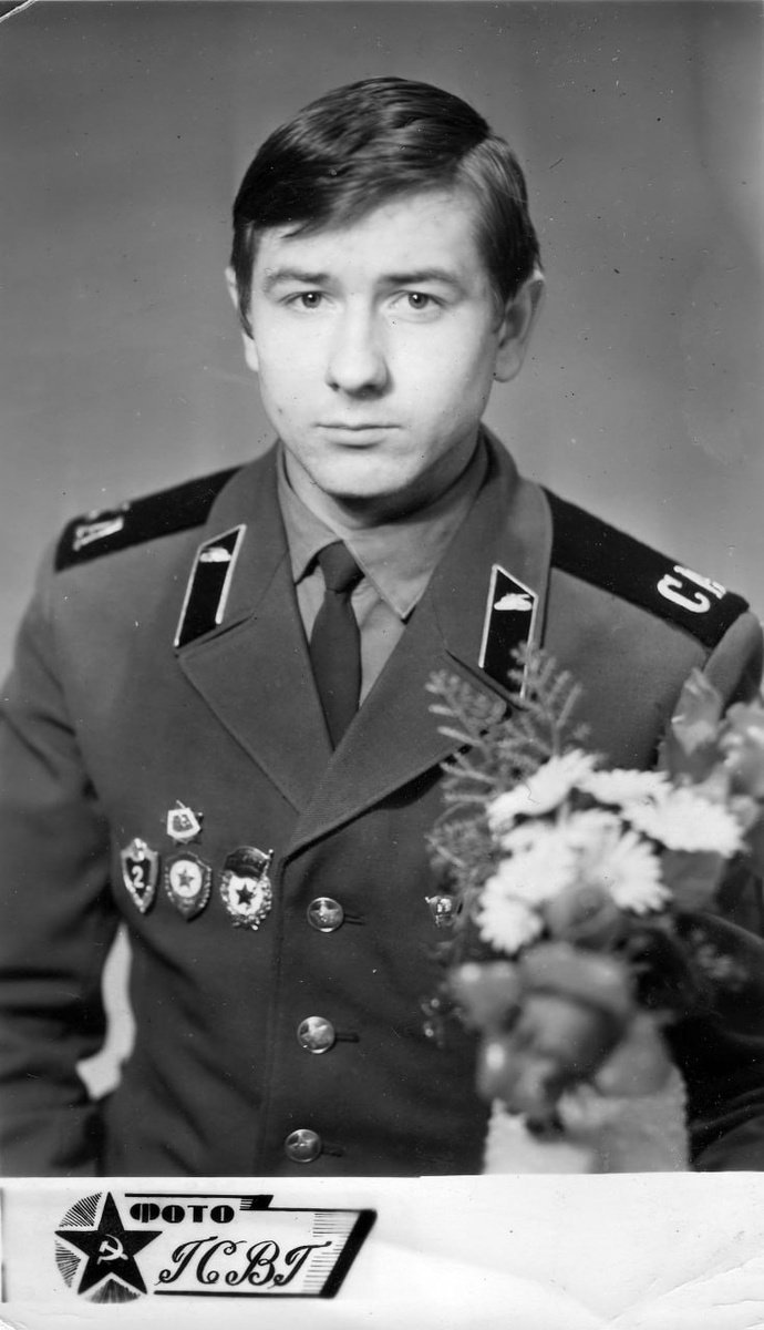 У солдата знаки - "Гвардия", "Отличник СА", "Специалист 2 класса", ВСК. Источник: отсканированная фотография из личной коллекции. #фото #ГСВГ #рядовой #танковые_войска #отличник #гвардия #ВСК #классность #Советская_армия