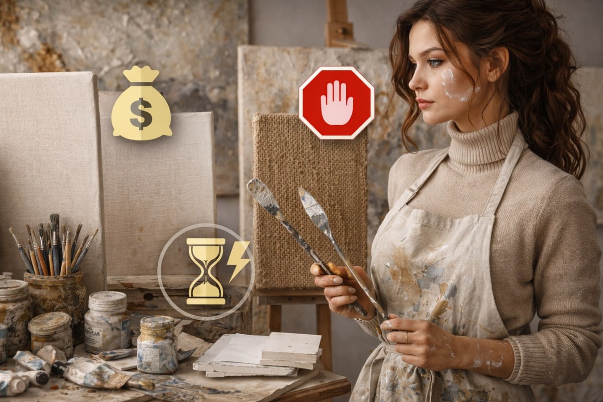 🎨 Но если вы экономите не там работа всё равно будет «дешёвой» по ощущению💯 И это не про цену материалов Это про то где вы режете глубину Давайте честно 👇 Где МОЖНО экономить: На бренде 💸 Часто вы платите за имя а не за качество На инструментах 🛠 Мастихин за 3€ может работать так же как за 30€ На количестве материалов 🎯 Перегруз почти всегда превращается в грязь ‼️Где НЕЛЬЗЯ экономить: На основе 🧱 Плохой холст не держит слой Не даёт плотности и «съедает» глубину На фактуре 🔥 Если вы боитесь потратить пасту вы уже ограничили работу Текстура должна жить а не быть тонким намёком На времени ⏳ Самая частая ошибка это «и так нормально» Но глубина появляется когда вы возвращаетесь и усиливаете На смелости ⚡️ Экономия здесь звучит как «а вдруг испорчу» И вы не доходите до сильной точки В итоге получается аккуратно Но не цепляет Запомните 💥 Сильная работа это не про дорогие материалы Это про места где вы не пожалели себя Если откликается напишите На чём вы чаще всего эко