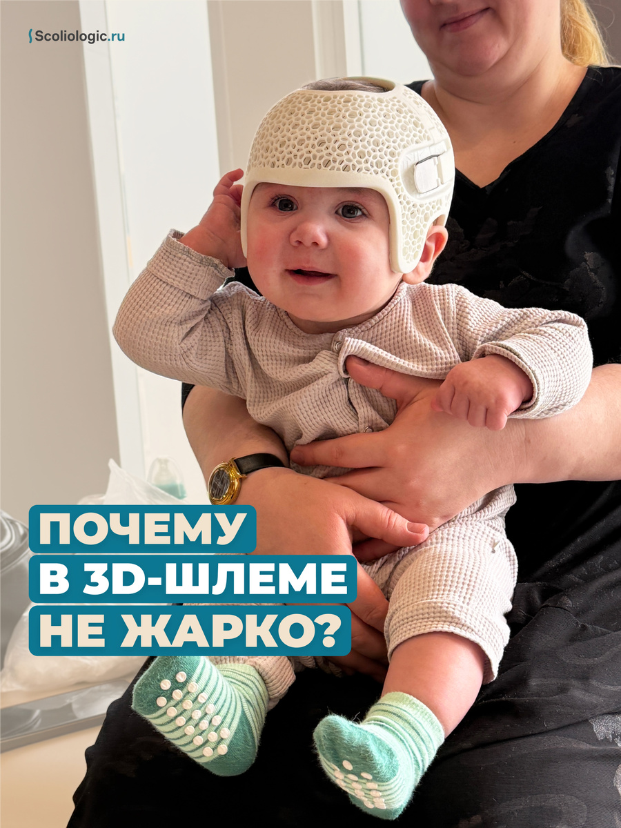 Многие родители справедливо переживают, что в ортопедическом шлеме голова будет потеть и малыш не сможет носить изделие положенное время. Тем более впереди лето, жара. Но в 3D-шлемах используется инновационная технология, которая поддерживает оптимальную терморегуляцию. Благодаря особой конструкции и системе внутренних вентиляционных каналов тепло эффективно отводится от головы. Это обеспечивает постоянную циркуляцию воздуха, что позволяет голове ребенка не потеть, даже в жаркие летние дни. Пусть все малыши будут здоровы, а молодые родители спокойны!