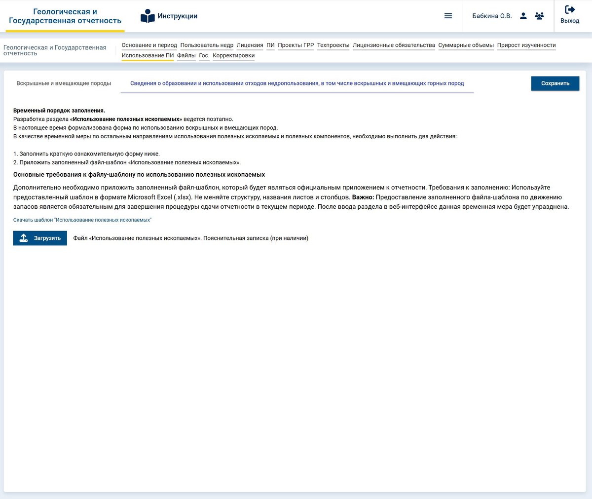 И вновь изменения, но уже небольшие корректировки... Убрали два раздела: Здесь скачиваем шаблон: - Скачать шаблон "Использование полезных ископаемых" с 4 листами. Разработчики дополнили страницу следующим содержанием: Т.Е. в бедующем, мы будем заполнять данный раздел, как раздел вскрыши - непосредственно на сайте "вбивать" информацию. шаблон в формате Microsoft Excel (.xlsx). - это временно. не привыкаем). Всем хорошей работы!