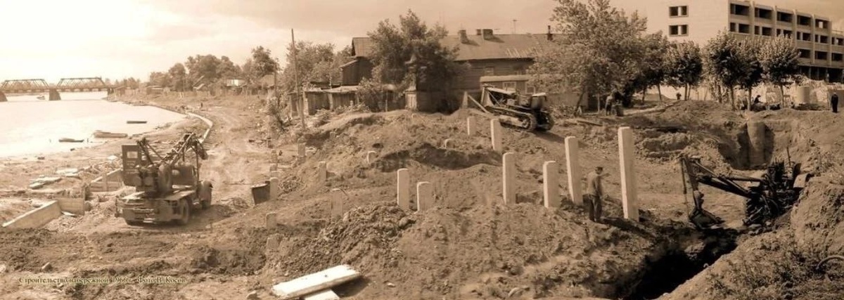 Строительство набережной реки Суры. Фотография 1966 года.