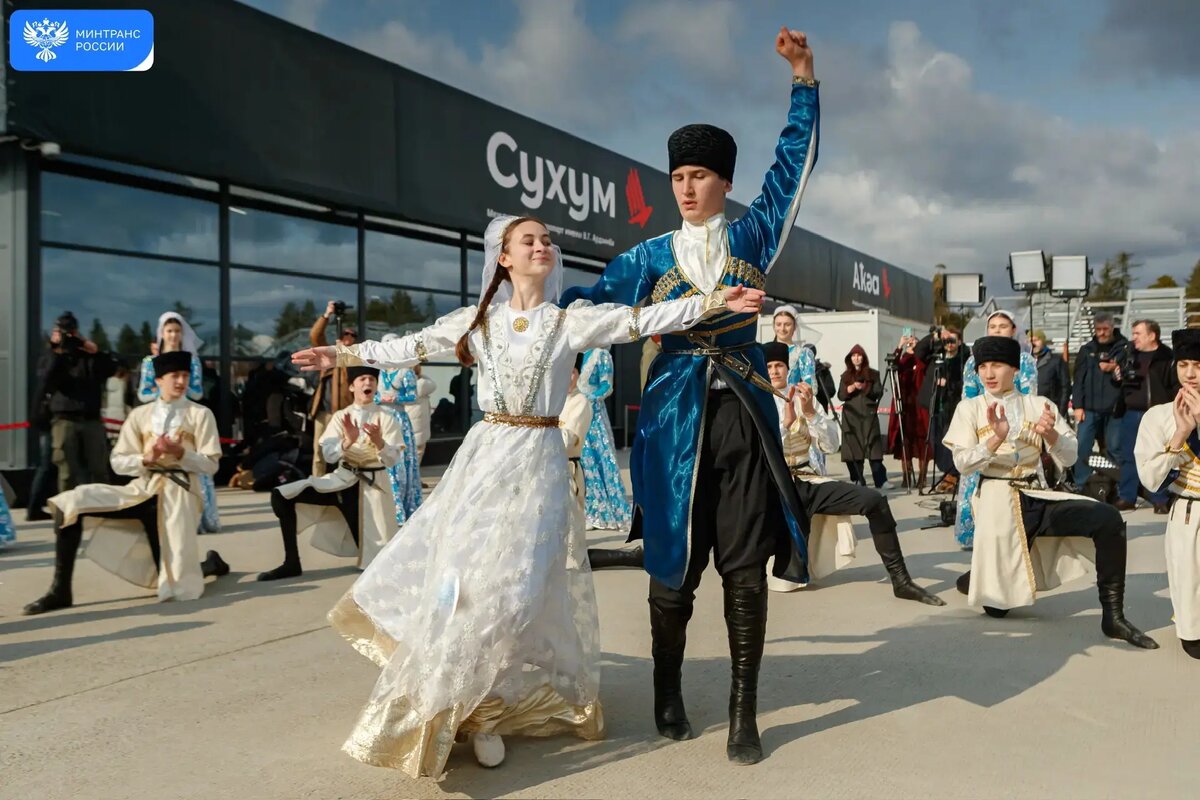 В торжественной церемонии запуска комплекса с площадки МТЛФ приняли участие вице-премьер РФ Виталий Савельев и министр транспорта Андрей Никитин. Пропускная способность терминала — 400 пассажиров в час. Обновление инфраструктуры позволяет принимать современные средне- и дальнемагистральные самолеты, в том числе в сложных погодных условиях. Полеты из временного терминала Сухума были возобновлены 1 мая 2025 года, после более чем 30-летнего перерыва. Общий пассажиропоток за год превысил 120 тысяч человек.