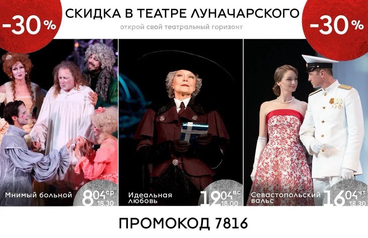 ? Сделаем это вместе и выгодно! 🎭 Посетите спектакли Севастопольского академического русского драматического театра им. А. В. Луначарского со скидкой до 30% по промокоду — и насладитесь постановкой, которая подарит вам особенный вечер. 🙂 Увидимся в театре! #объявления_севмгу