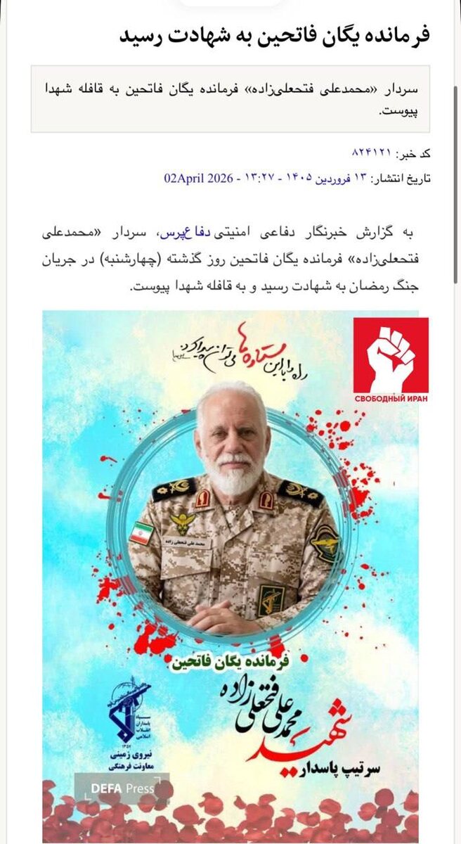 🇮🇷🛑 В Иране подтвердили гибель командира «Фатахин» 💥