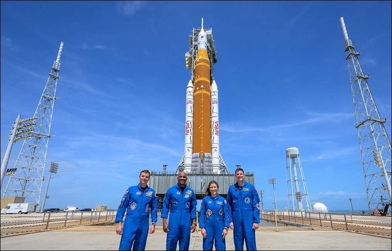 Политкорректность полностью соблюдена - в составе экипажа чернокожий, женщина и иностранец. Слева направо: астронавты НАСА Рид Уайзман, командир миссии «Артемида II»; Виктор Гловер, пилот миссии «Артемида II»; Кристина Кох, специалист миссии «Артемида II»; и астронавт Канадского космического агентства Джереми Хансен