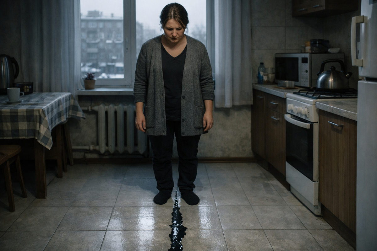 В ту минуту Алевтина увидела ту самую полоску льда снова. Она тянулась уже из кухни в коридор, тонкая, чёрная, почти красивая. Борис проследил за её взглядом и тоже посмотрел вниз. Лицо у него изменилось.
