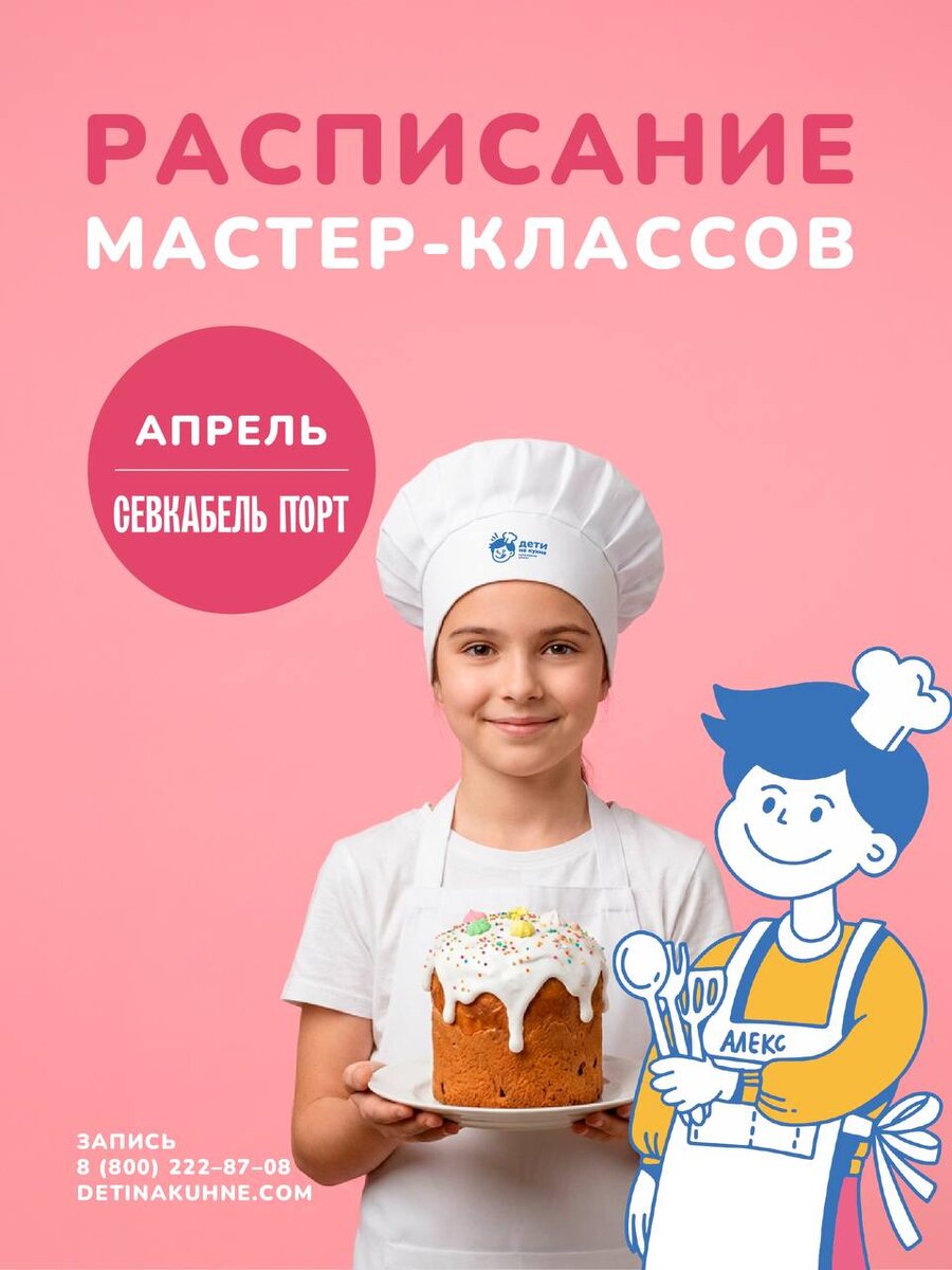» 🧑🍳 В апреле нас ждут мастер-классы в честь Дня космонавтики, где мы приготовим кейк-попсы планеты и овершейки «Ракеты». Ждём вас и на тематических мастер-классах в честь главного события месяца — Пасхи! Мы будем готовить кейк-попсы «пасхальные яйца», делать наборы куличей с разными начинками (классические, шоколадные и творожные) и приготовим творожный кулич в 4 руки на мастр-класс «Дружная семья» в Севкабель Порт ❤️ А также продолжим знакомить детей с трендовыми блюдами: ассорти цветных хинкалей, пузиблинчики с шоколадом и онигири с курочкой терияки и сливочным сыром! 📲 Актуальное расписание всех мастер-классов можно найти в закреплённом посте или на нашем сайте: https://clck.ru/3R3S3i 📍Севкабель Порт, Кожевенная линия, 40 📍Московский рынок, Решетникова, 12