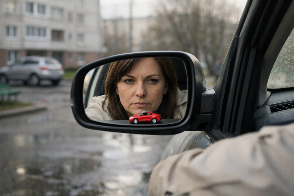 Алёна наклонилась к ученице и тихо сказала, что одних зеркал мало, голову всё равно надо повернуть. Вечером, когда она села в семейную машину, под каблуком хрустнула маленькая пластмассовая машинка, которой в их доме быть не должно.